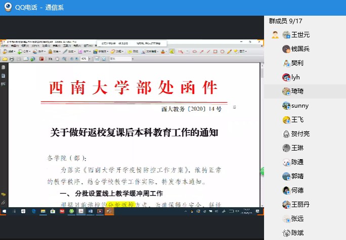 随后,王世元带领大家一起学习了返校复学的相关文件,并提醒老师们要注意做好相关的防护和线上线下授课的衔接。