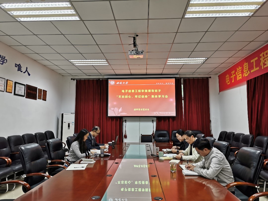 为深入学习贯彻习近平新时代中国特色社会主义思想,扎实开展“不忘初心、牢记使命”主题教育, 10月10日下午,学院领导班子在三楼会议室开展“不忘初心、牢记使命”主题教育集中学习研讨。党委书记毕均明主持学习。