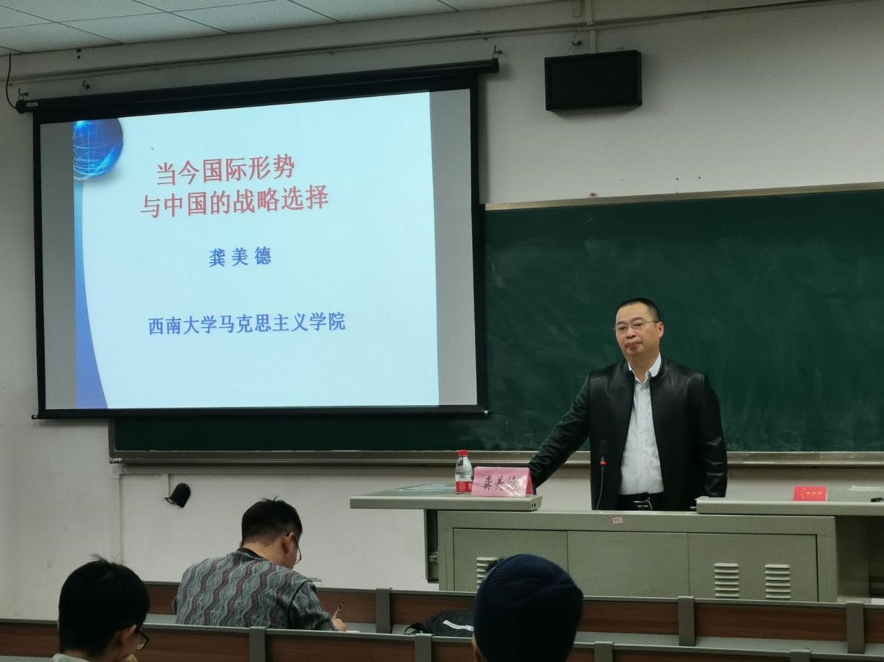 2020年11月20日至21日,尊龙亚洲官网第7期入党培训班第3讲、第4讲如期开展。本周党课由马克思主义学院副教授龚美德老师及党委宣传部部长李荣华老师主讲。课上,两位授课老师分别以“当今国际形势与中国的战略选择”和“党的组织制度与纪律”为主题,从党外部的形势状况与党内部的规程制度深层解析了中国共产党的过往历程以及发展前景,令在场同学受益匪浅。