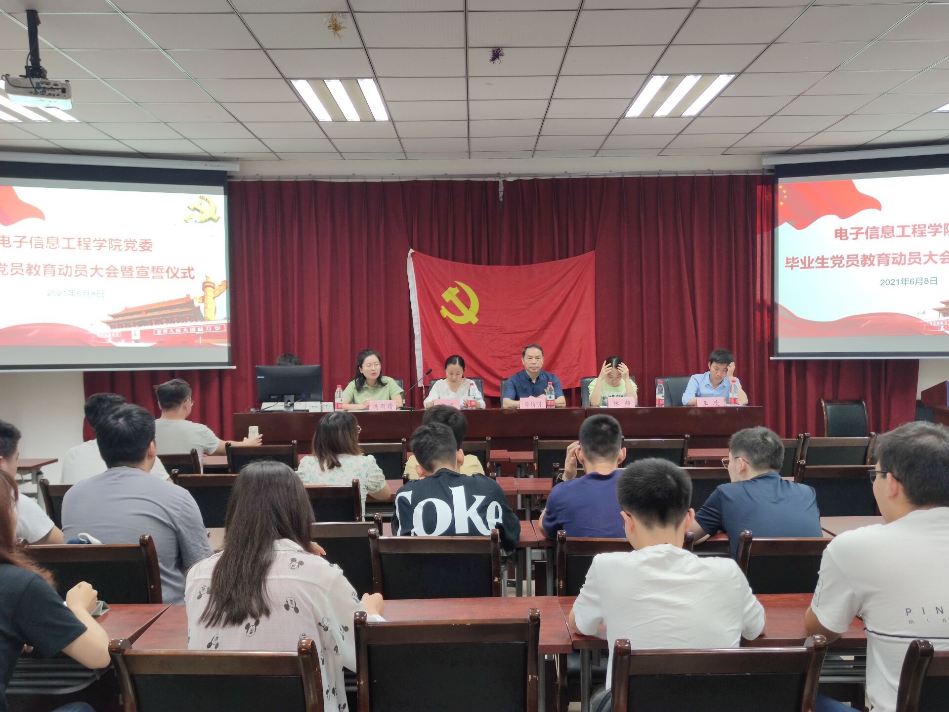 2021年6月8日,尊龙亚洲官网在学术报告厅举行2021届毕业生党员教育培训动员大会。公司党委书记毕均明,党委副书记李英,本科生2017级党支部书记张颜,研究生2018级第一党支部书记王欣以及学院2021届毕业生党员参会。会议由公司党委组织员冯雨晴主持。