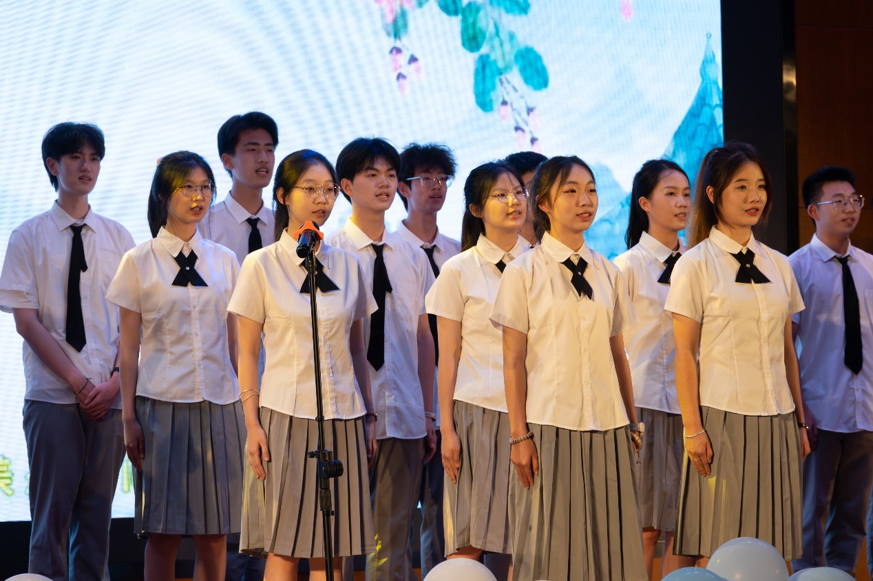 晚会在学院员工合唱团带来的院歌《飞翔》、合唱《上春山》中拉开帷幕。“继往开来,一路行健自强;含弘光大,胸怀民族梦想。”歌声铿锵有力却又不失宛转悠扬,象征着我们不仅有着工科学子昂扬拼搏精神,也有着独属于我们青春岁月的意气风发。