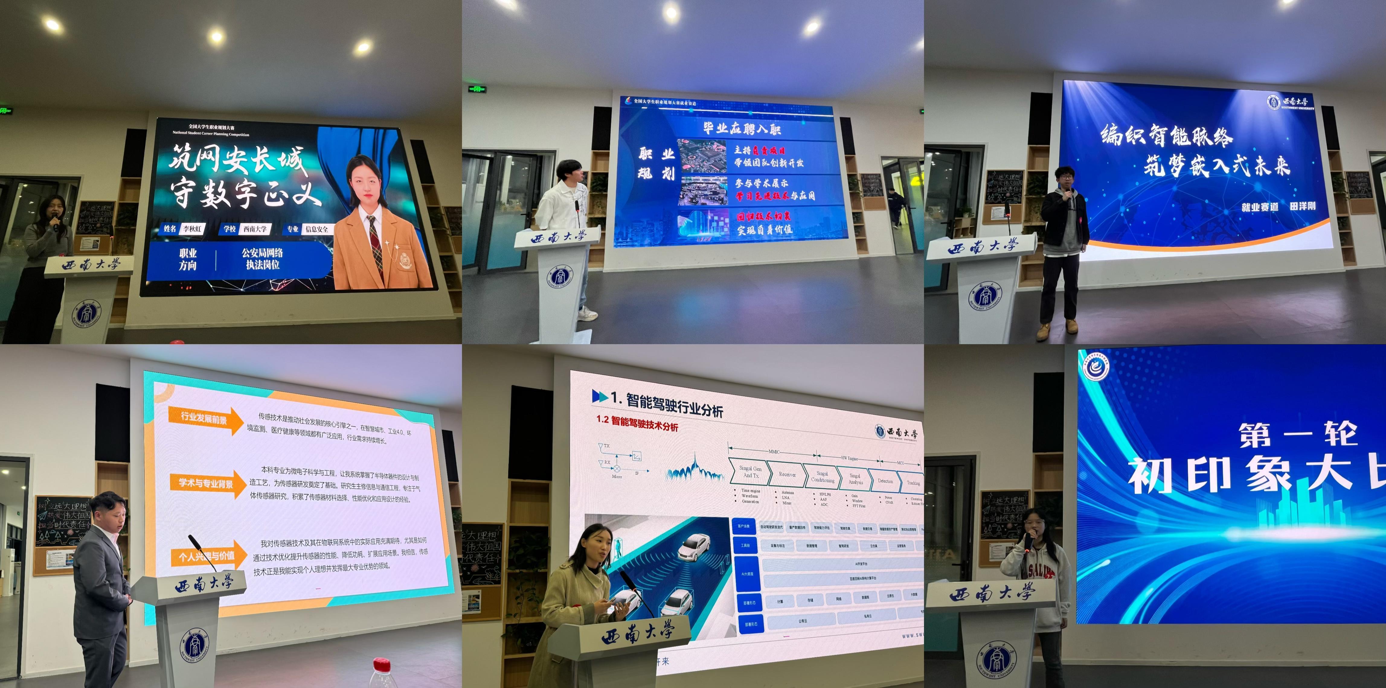 在第二轮“职业规划阐述”中,选手们依次展现了他们对未来职业道路的清晰规划和就业目标。比赛结束后,汪天才结合自身成长经历和工作经验,对本次比赛进行点评总结。他建议同学们勇于实践,在实践中提升自身的专业能力,为就业提升竞争力。