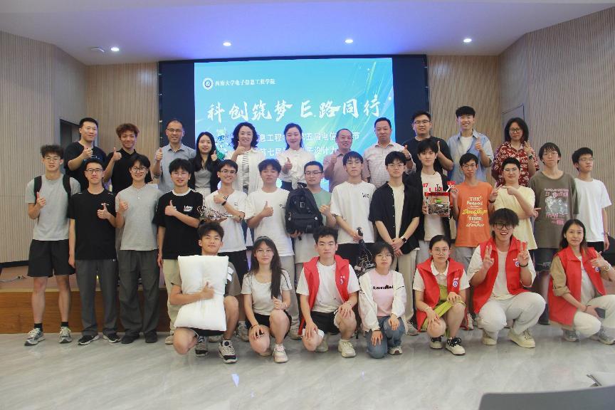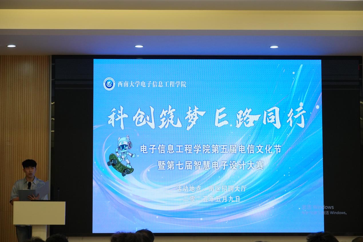 在2025年国际电信日即将到来之际,5月9日,学院第五届电信文化节暨第七届智慧电子设计大赛在南区招聘大厅如期举行。公司党委副书记 纪委书记谢俪、团委书记 学工办主任余琼、实验中心主任刘东卓、副主任周颖华、教师代表龙正吉、刘杨妮、闫宏政,以及12组参赛选手和学院百余名员工代表参加。