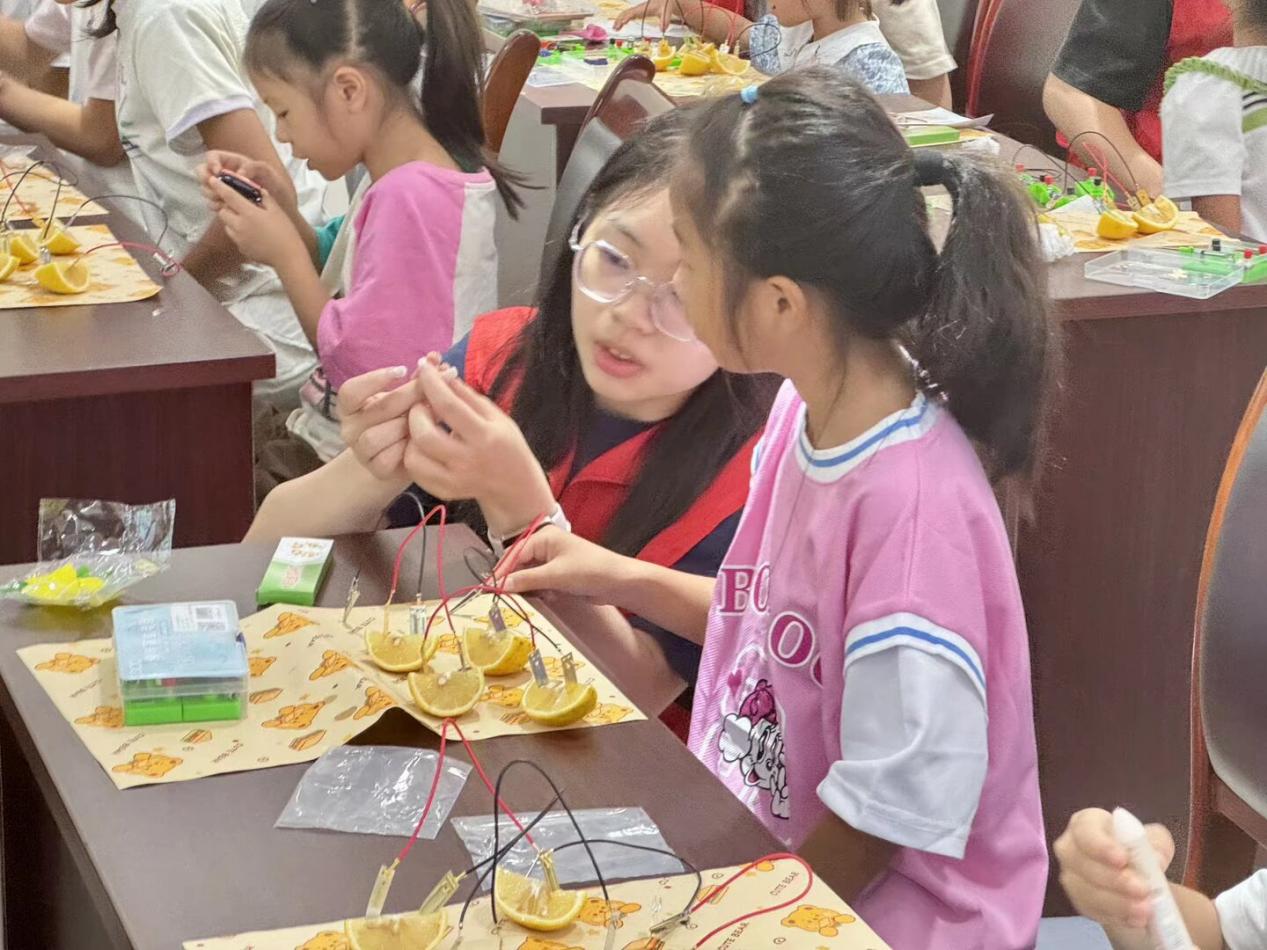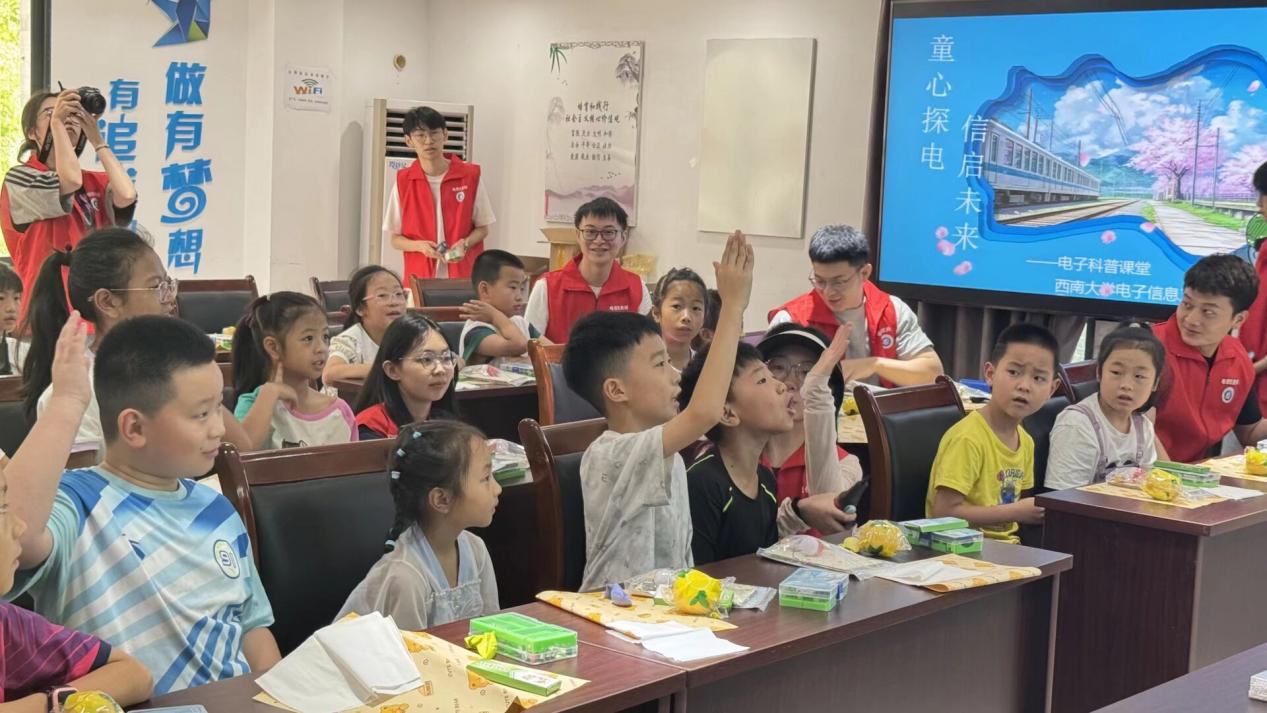 次日,实践团继续前行,将专业知识转化为服务社会的生动实践。上午实践团走进沙坪坝区山洞社区,为社区儿童带来了一场别开生面的科技启蒙课堂。通过“静电小纸人”、“柠檬小电池”、“电路连连看”和“积木发电机”等趣味实验,让小朋友们近距离接触了电的奥秘。下午来到歌乐山森林公园,开展环境卫生志愿服务,以实际行动践行新时代青年的责任担当。