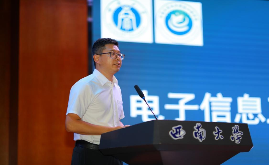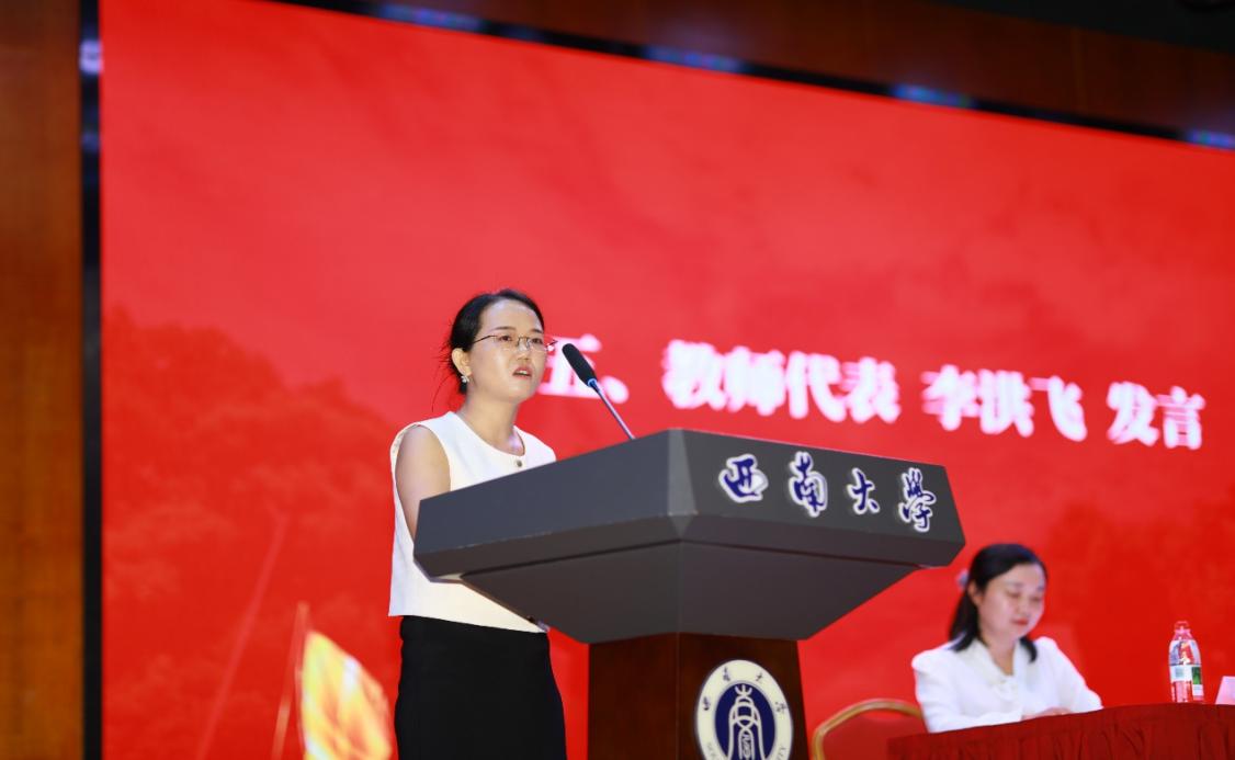 教师代表李洪飞以亲切真挚的语言寄语新生,分享了三点大学成长建议:一是学会自律,坚持不懈;二是培养独立思考能力,做到知行合一;三是保持创新精神和终身学习意识,紧跟电子信息领域发展前沿。