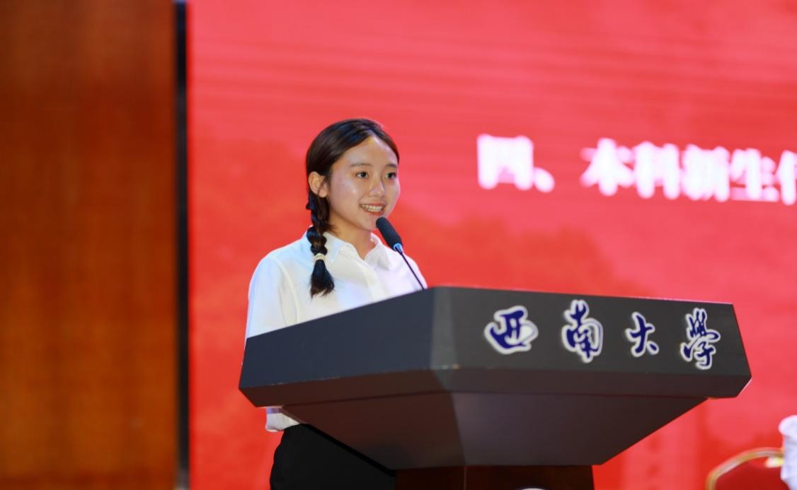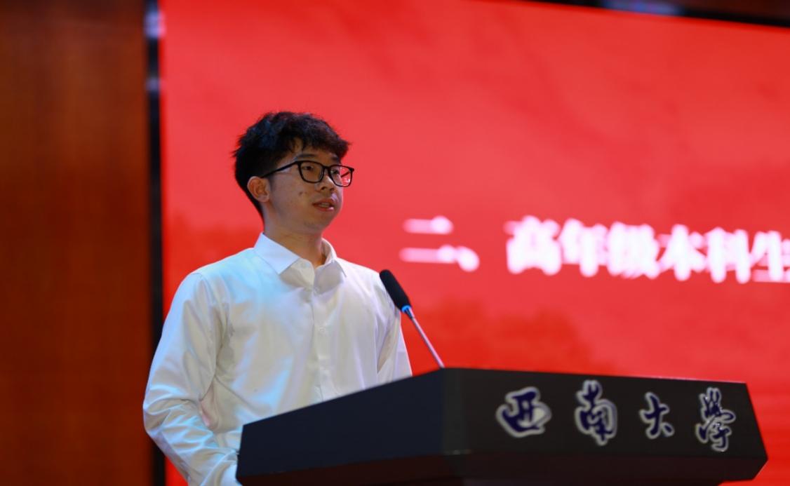 高年级本科生代表2022级电子信息工程专业田洋刚同学围绕“方向、眼界、行动、感恩”四个关键词,分享了自己对老员工活的思考与建议。他引用“强国建设,青年何为”的时代之问,勉励新生把握时代机遇,在逐梦路上既仰望星空,也脚踏实地,用奋斗书写青春答卷。