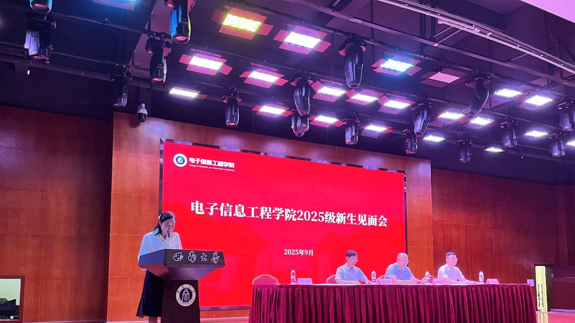 9月8日下午,学院2025级新生见面会在学工部107报告厅顺利召开。公司党委书记李传东,党委副书记、纪委书记谢俪,副经理解宜原,副经理王慧维,以及各系主任、实验中心主任、学工办主任、办公室主任、教学办主任、专职组织员、新生辅导员、新生班主任以及2025级全体本科生、研究生等400余人参加了见面会。会议由谢俪主持。