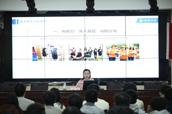 谢俪系统阐述了新时代工科员工干部应当具备的“四有”能力:一是“有脚力”,深入基层,站稳立场;二是“有眼力”,洞察细微,明辨是非;三是“有脑力”,勤于思考,勇于创新;四是“有笔力”,书写精彩,传递价值。