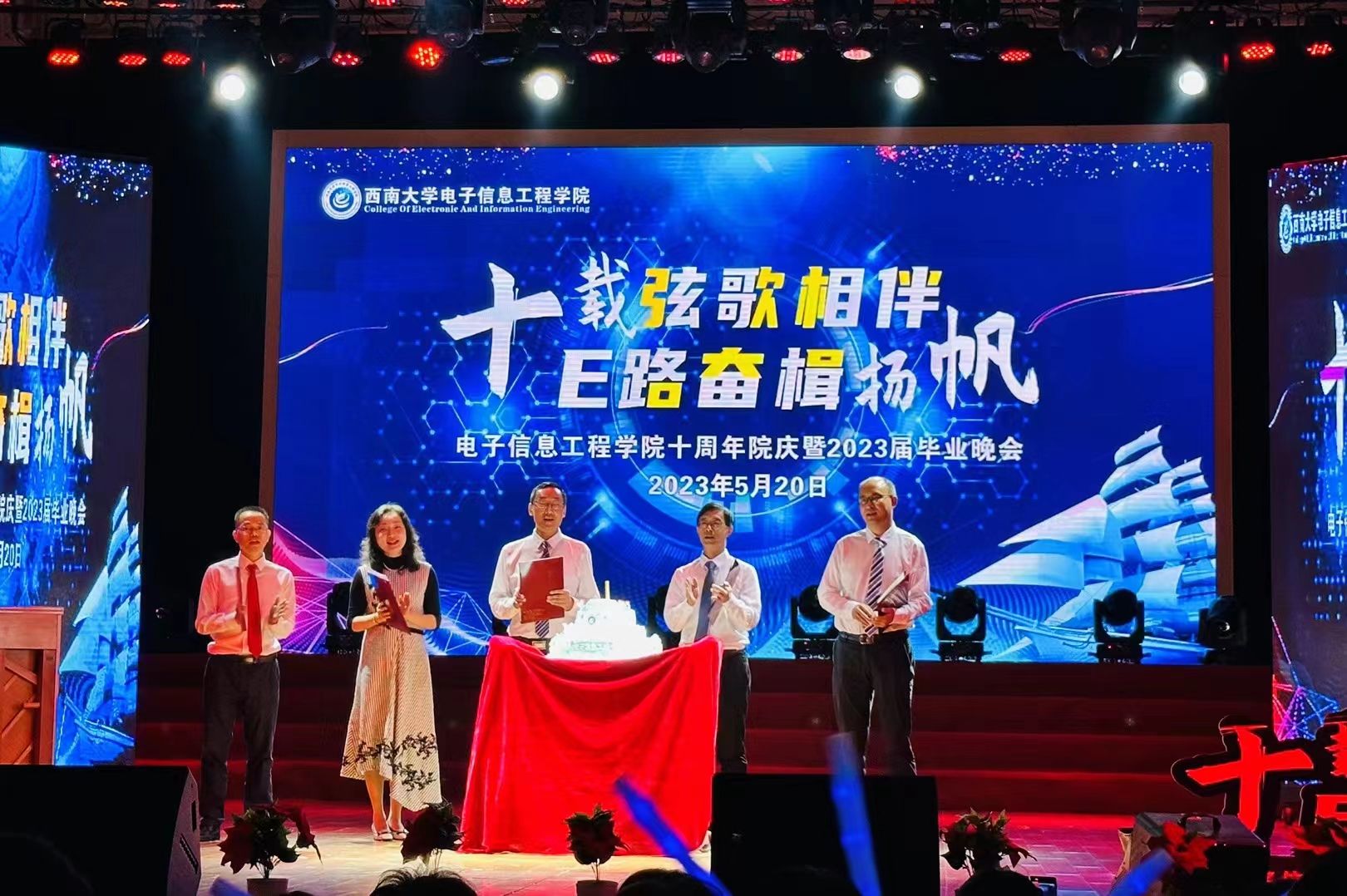 5月20日,公司“十载弦歌相伴 E路奋楫扬帆”十周年院庆暨2023届毕业晚会在光大礼堂成功举办。公司党委书记熊海灵、经理李传东、原党委书记毕均明、党委副书记、纪委书记谢俪、副经理解宜原、李华青、办公室主任高渤、信息安全系主任王慧维、实验中心主任刘东卓、学工办主任张颜、教学办公室主任何沐曦、2019级辅导员余琼以及学院师生等800余人观看了晚会。