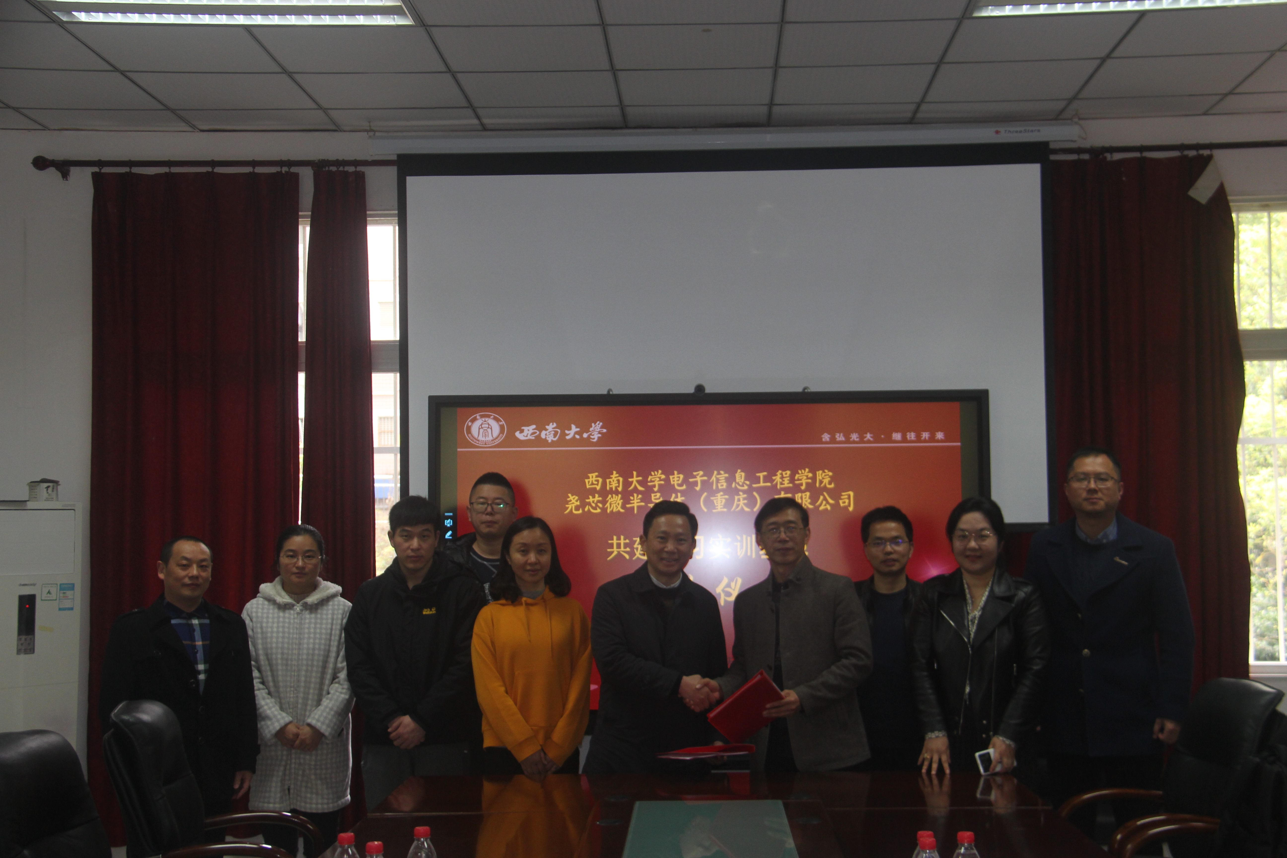 2021年3月3日,尊龙亚洲官网与尧芯微半导体(重庆)有限公司在尊龙亚洲官网会议室签署战略合作协议,共建实习实训基地。公司党委书记毕均明、经理李传东、副书记李英、副经理王丽丹,尧芯微半导体(重庆)有限公司总经理李亚东出席签订仪式。