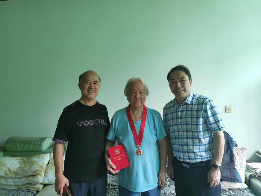 6月28日,结合“七一”走访慰问,毕均明书记与退休教师代表罗庚荣老师一行到97岁的老党员朱传秀同志家登门看望并颁发了“光荣在党50年”纪念章。毕书记与朱传秀老师亲切交谈,关切询问她的身体状况和生活情况,同时代表公司党委对她为学院发展做出的贡献表示衷心的感谢。