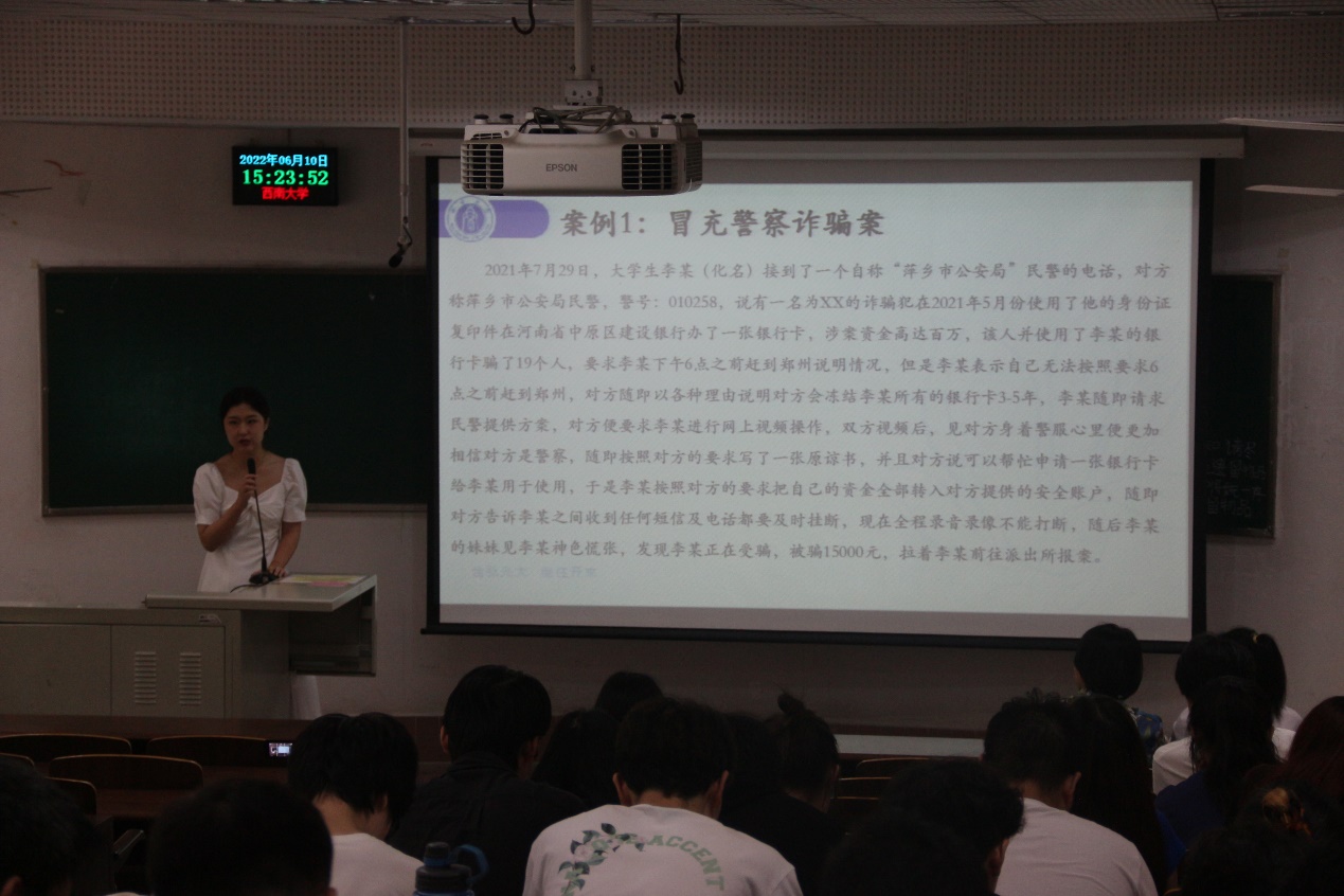 通过此次讲座,不仅让同学们了解到诈骗者常用的一些手段,而且也强化了同学们自我防范意识,提高识骗防骗能力,筑牢了防诈反诈的坚实堤坝,为建设平安校园打下了坚实的基础。
