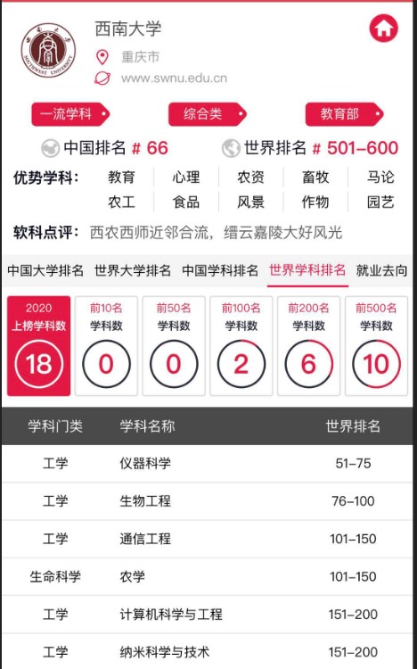 作为高等教育评价机构,软科(ARWU)旗下拥有众多在国内外具有影响力和认可度的排行榜:软科世界大学学术排名、软科世界一流学科排名、软科中国大学排名、软科中国最好学科排名等,它与泰晤士高等教育世界大学排名、QS世界大学排名、U.S. News世界大学排名被公认为四大权威大学世界排名。“软科世界一流学科排名”覆盖理学、工学、生命科学、医学和社会科学五大领域的54个学科。排名指标体系包括Q1期刊论文数、论文标准化影响力、国际合作论文比例、顶尖期刊论文数和教师获权威奖项数等五个指标。此次排名的对象为全球4000余所大学,共有来自90个国家和地区的1800余所高校最终出现在各个学科的榜单上。