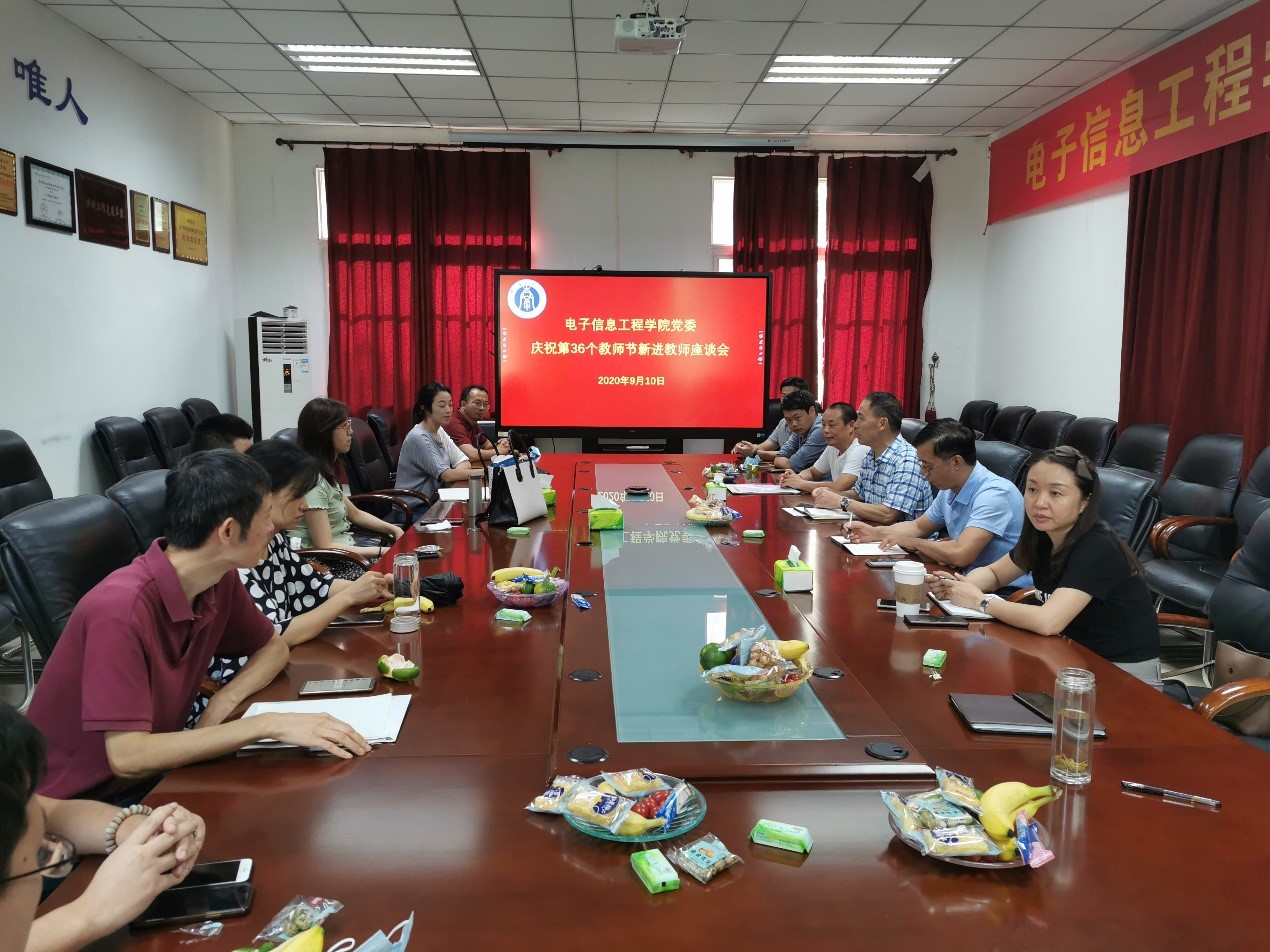 2020年9月10日下午,为庆祝第36个教师节,电信息工程公司党委在会议室召开了新进教师座谈会。公司党委书记毕均明、经理李传东、副书记李英、副经理解宜元以及教师代表与新进教师进行了座谈。会议由公司党委书记毕均明主持。本次座谈会,新老教师围绕本科与公司产品、青年教师的成长、学院的建设等方面进行了交流。