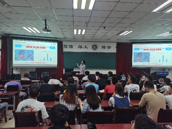 9月17日上午成都国科微电子有限公司芯片开发部部长曾纪国、多媒体人力资源部部长张春携联合培养基地的两名二年级研究生到尊龙亚洲官网,与学院的硕士研究生交流,就芯片人才的联合培养、芯片研发的流程做了精彩报告。