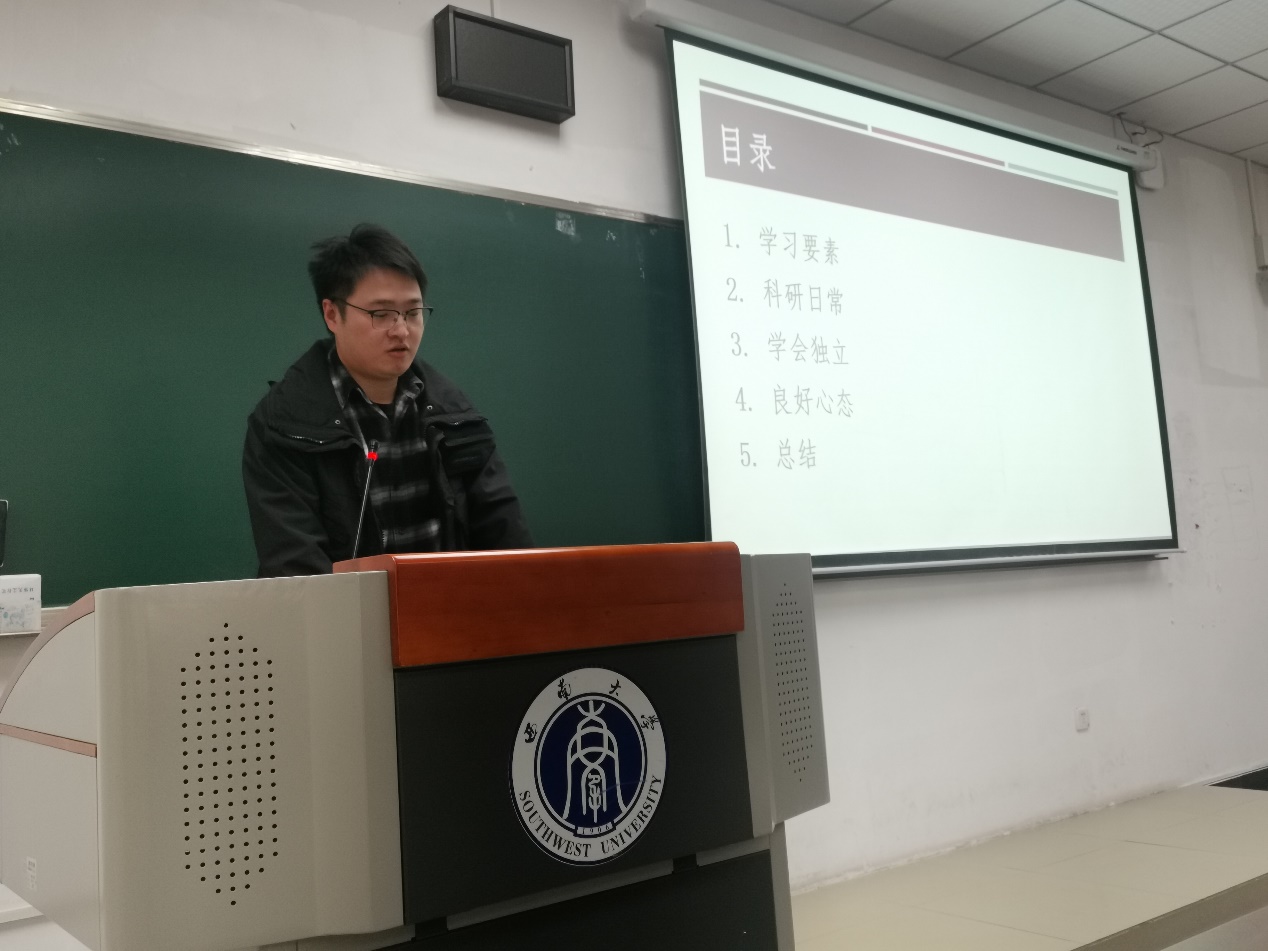 首先,由学院2021级硕士研究生、2023学年国家奖学金获得者杨金月为全体研究生分享了她在研究生生活中的学习心得,并就如何高效地进行文献阅读以及科研工具的选取等给出了建设性的建议。杨金月表示,在研究生阶段面对各种压力和困难,首先要坚定自己的信念,要有勇气面对未知的挑战,有信心去突破自己的极限。此外,杨金月建议同学们要制定详细的学习计划,合理安排时间,养成良好的学习习惯,保持学习的连贯性和稳定性。最后,杨金月针对同学们提出的问题逐一进行了解答。