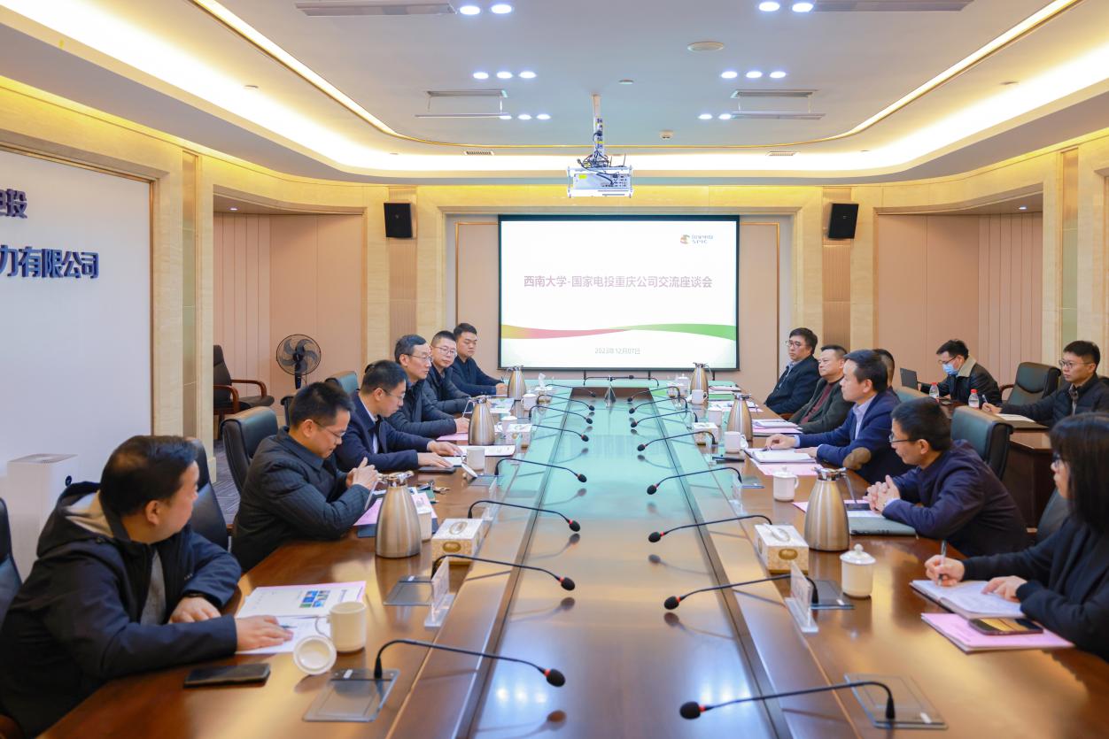 魏斌对韩旭东一行的莅临指导表示热烈欢迎,介绍国家电投重庆公司在常规水火电、新能源、综合智慧能源、配售电、热力产品等领域的开发、投资、建设、经营和管理情况,表示希望与学校在新能源、智慧检测和乡村振兴等领域开展交流合作,共同推动国家硬核科技指导能源产业发展,保障能源和电力安全。