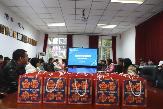 活动最后,学院领导为考研员工送上学院精心准备的考研“金榜题名”礼包。大礼包包含考研学子专属名字“一战成硕”可乐、“旺气冲天”牛奶糖、“薯”你最棒薯片、“巧”克难题士力架以及“锦鲤”签字笔,包含了学院对考研学子浓浓的关爱和殷切的期盼,希望考研学子一“研”为定、成功上岸!