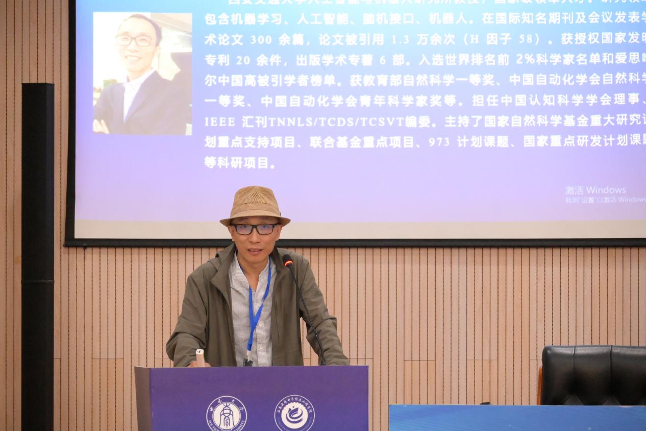 接下来的学术报告环节分为两场,上半场报告首先由西安交通大学陈霸东教授以《基于信息论学习的类脑计算与脑机智能》为题,介绍了信息论学习的基本概念,以及在监督学习和表示学习中的具体方法,探讨了信息论学习在类脑计算和脑机智能领域的应用。该报告由学院副经理李传东教授主持。