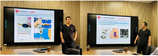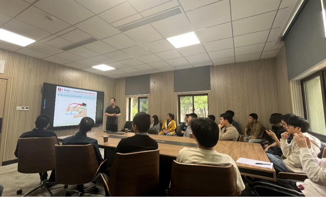 在报告中,程龙博士介绍了手功能康复机器人的研究背景和现状,着重探讨了手功能康复机器人的具体需求。他详细介绍了手功能康复机器人在设计方面的便携性、兼容性和功能优化。此外,程龙博士的报告还涉及了触觉传感器、被动交互和主动交互等相关内容,全方位展示了手功能康复机器人的研究进展,使得学院师生对该领域的了解更加深入。