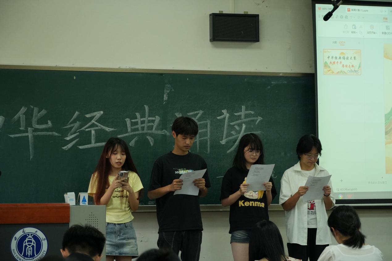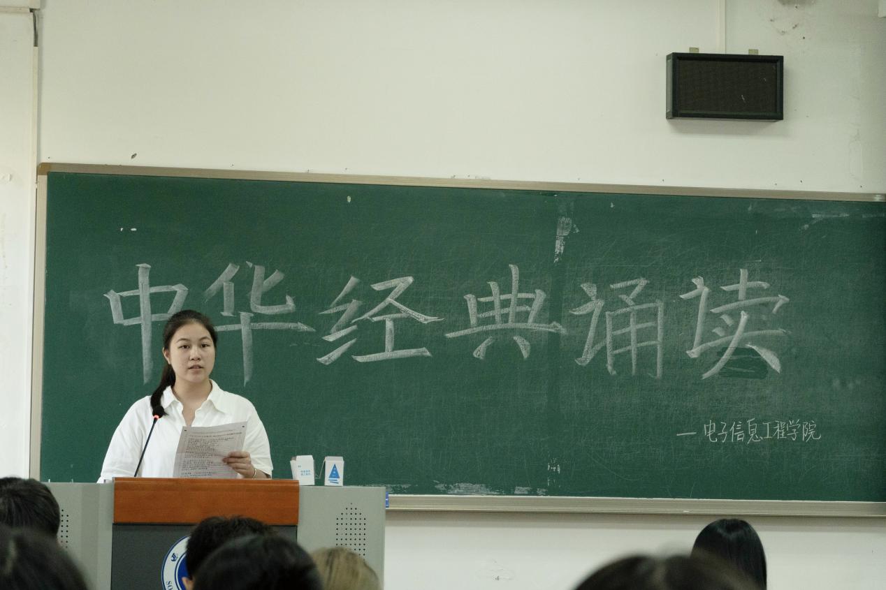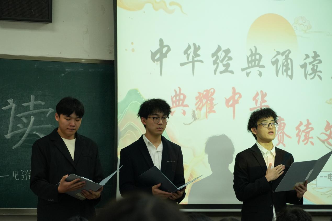 来自学院各年级的14组选手,每一位朗诵者时而激情豪咏,时而婉约清述,以饱满的热情,声情并茂地表达了对党和祖国的深情挚爱。评委们按照仪表形象、语言表达、姿态神情以及朗诵效果四个方面对选手进行打分。最终,2023级信息安全1班郑田胜带来的《屈贾赋》和2023级电子信息工程1班的王宇旸、隆岩松带来的《我的南方和北方》获得本次比赛的一等奖,其余组别分获二、三等奖。在这个舞台上,每一位选手用他们的声音与情感,展现了经典之美,也传递了中华文化的深厚底蕴。朗诵的不仅仅是文字,更是中华儿女对文化的敬仰与传承。
