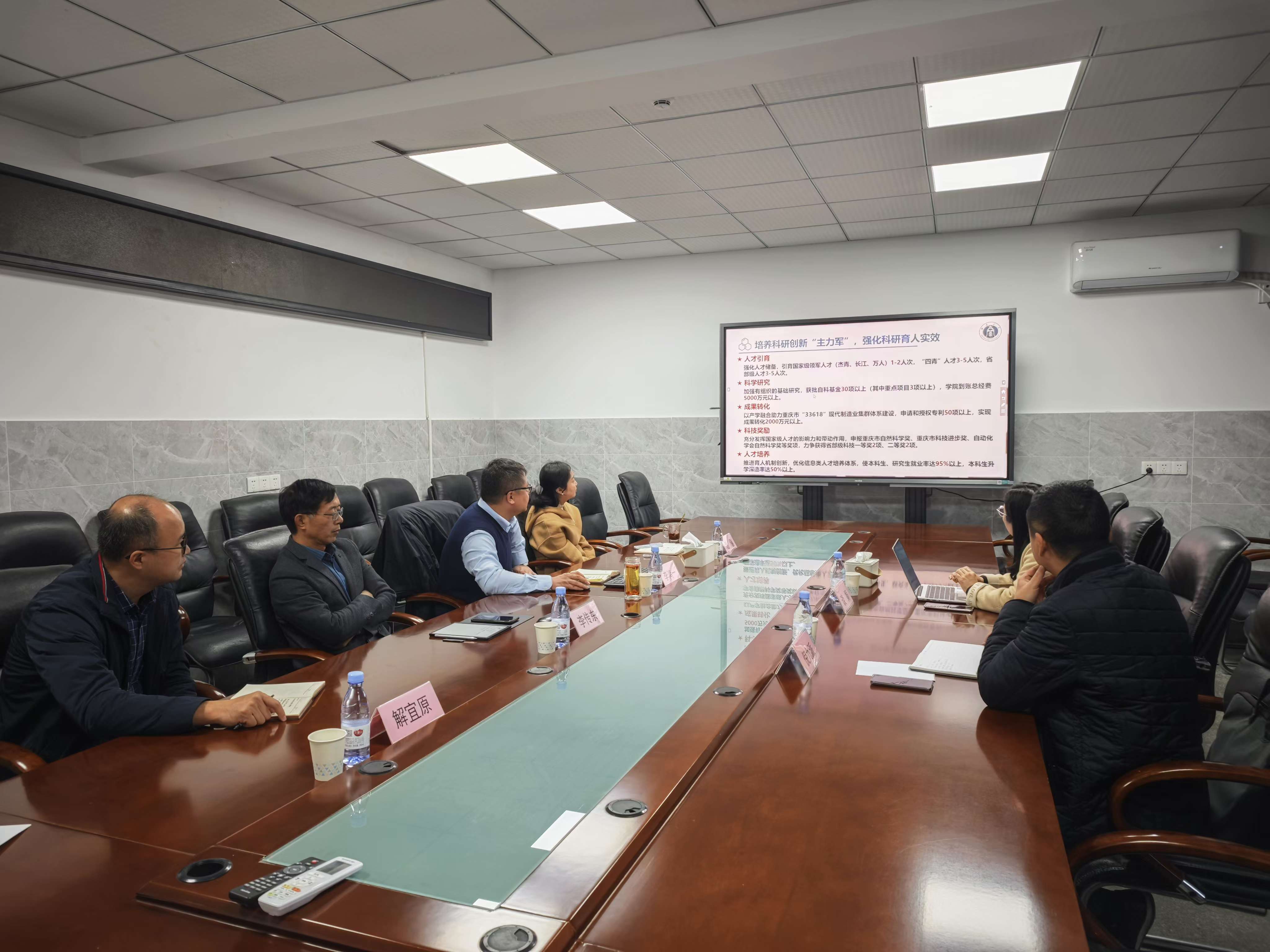 倪九派充分肯定了学院近年来各方面所取得的成绩,并对学院上下团结奋斗、务实肯干的精神表示赞许。他希望学院一是发挥信息学科优势和国家级人才的带动作用,以产学融合助力重庆市“33618”现代制造业集群体系建设,实现高价值的科技成果转化;二是加大对人才队伍建设成效和科技成果的宣传力度;三是提前谋划,强化科研奖励申报,积极培育重大标志性成果。倪九派表示,科技处将继续推进学科交叉联合、青年人才培养、重大项目平台申报等方面的支持服务。