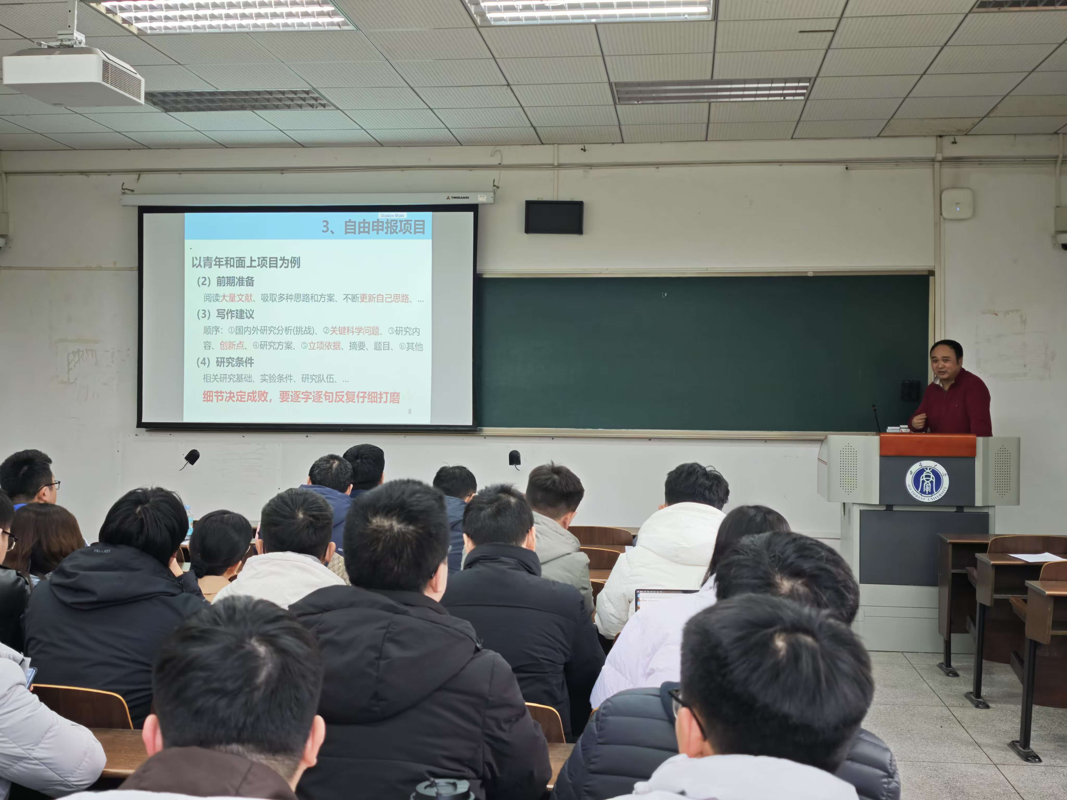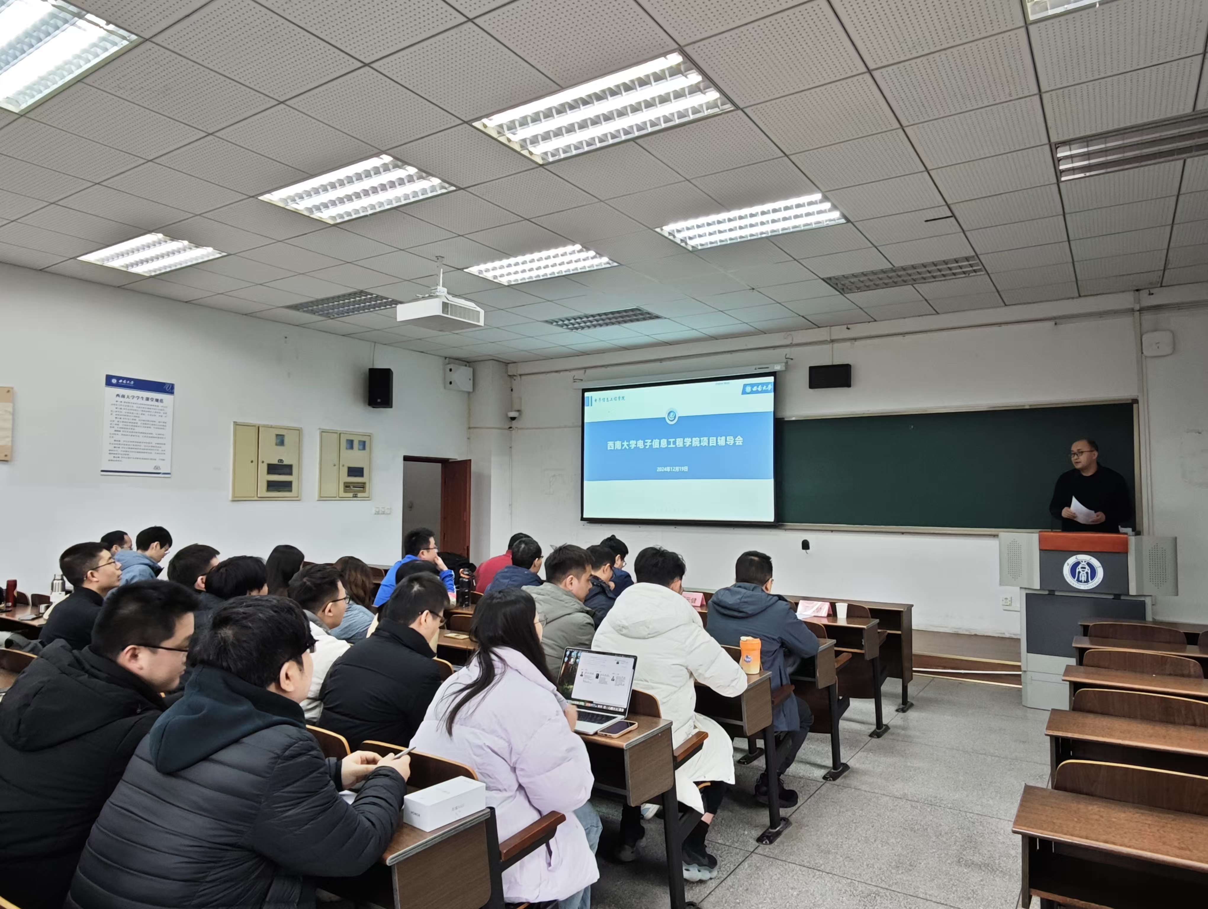 为切实做好2025年国家自然科学基金申报工作,加强有组织科研,提高基金申报书质量,2024年12月19日下午,在38楼502教室,电信公司召开自科基金申报专题辅导会。公司拟申报2025年国家自然科学基金的教师、博士后、博士研究生等共计40余人参加报告会,会议由副经理解宜原教授主持。