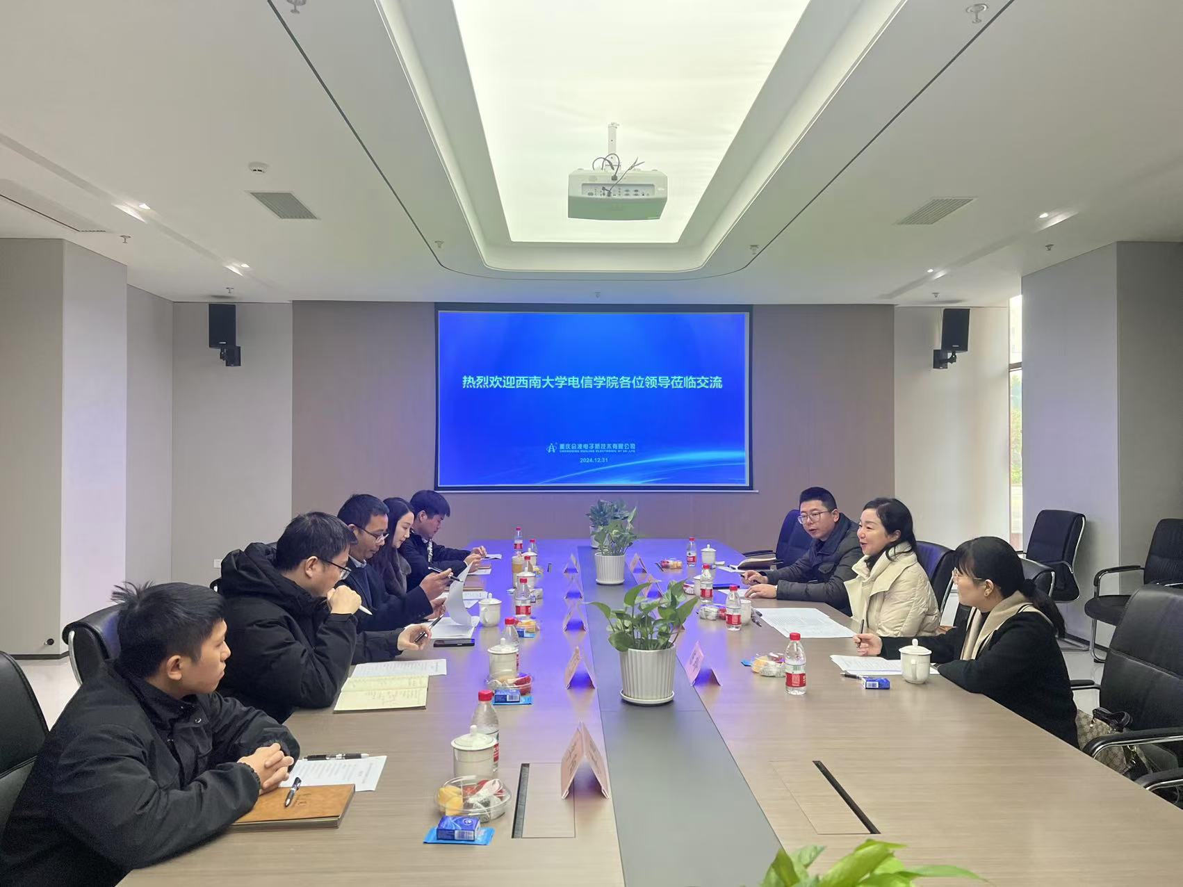 12月31日上午,公司党委副书记、纪委书记谢俪,信息安全系系主任王慧维, 校督导工作组专家陈玲,学院研究生办公室主任车杭骏一行组成督导调研小组,赴重庆会凌电子新技术有限公司开展了访企拓岗与公司产品督导交流工作。会凌电子行政财务总监濮建,总经办主任刘海霞,招聘经理龙春华,高级主任设计师赖顺友以及公司员工管佑名,李阳参与座谈。