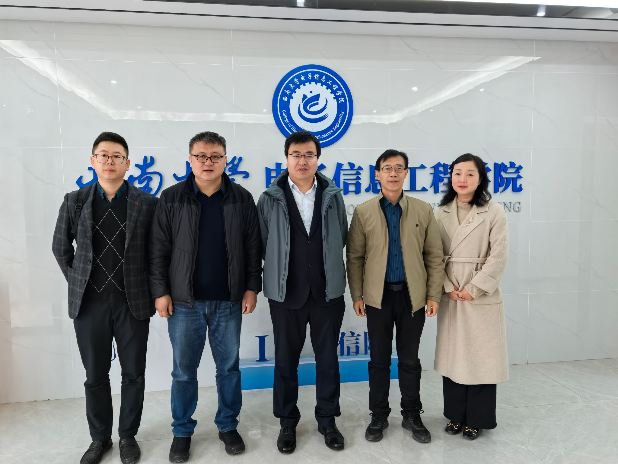 一行人首先参观了学院的成果展示厅、科研实验室、研究生学习室等。在交流环节,李传东介绍了学院自2012年独立设置以来在科学研究、队伍建设、人才培育、社会服务等方面的情况。李鸿一重点介绍了学院毫米波技术与集成应用、复杂智能感知与控制、光芯片与智能系统、信号与智能信息处理和情感计算与人机交互等五个科研团队的建设与科研进展,以及学院推进有组织科研的做法和经验,同时提出了学院下一步将紧密围绕重庆市“33618”现代制造业集群体系建设,结合学校学科优势,利用信息技术在“智慧+农业”,尤其是“智慧+山地农机”研究方面有所突破。