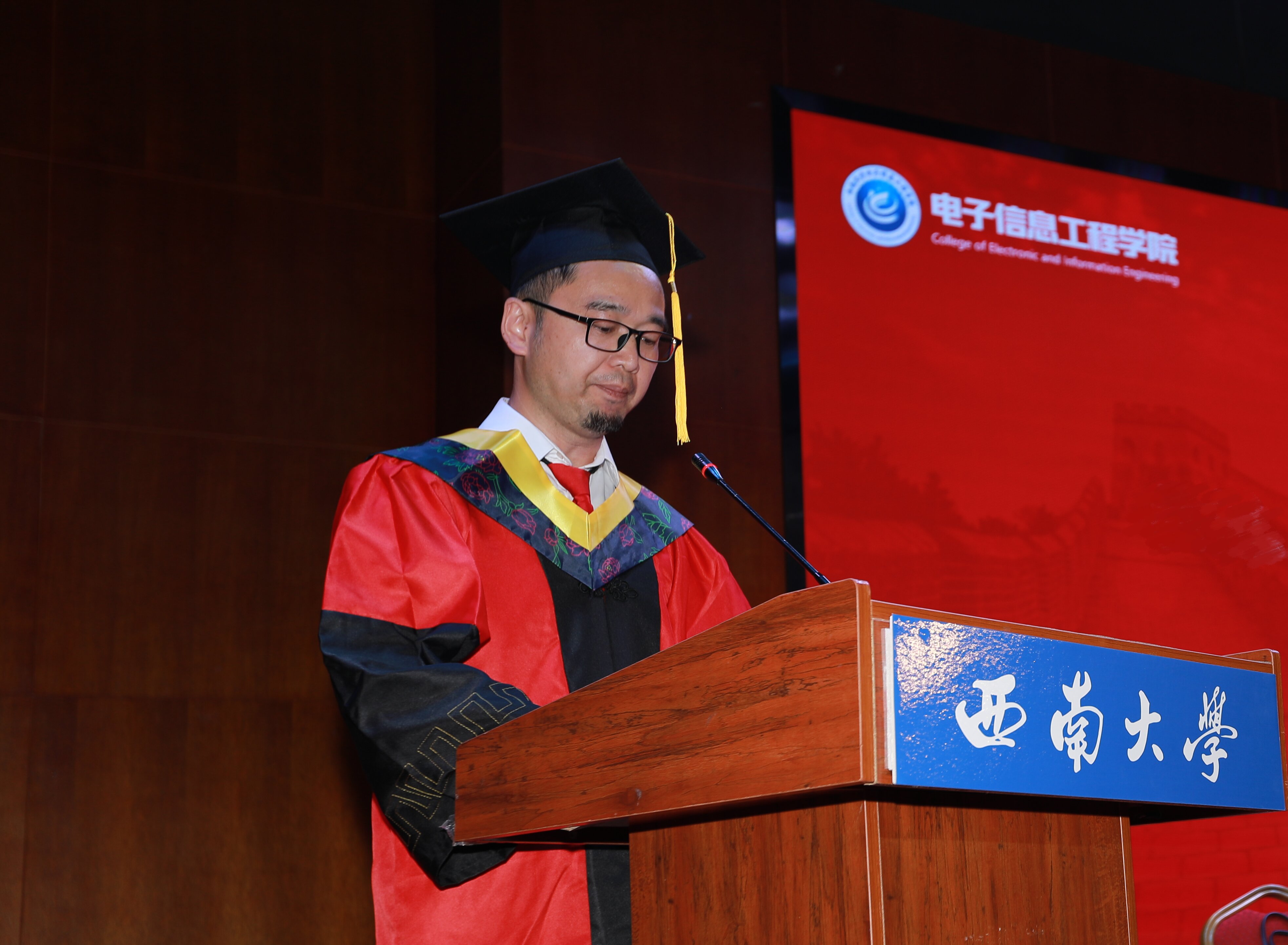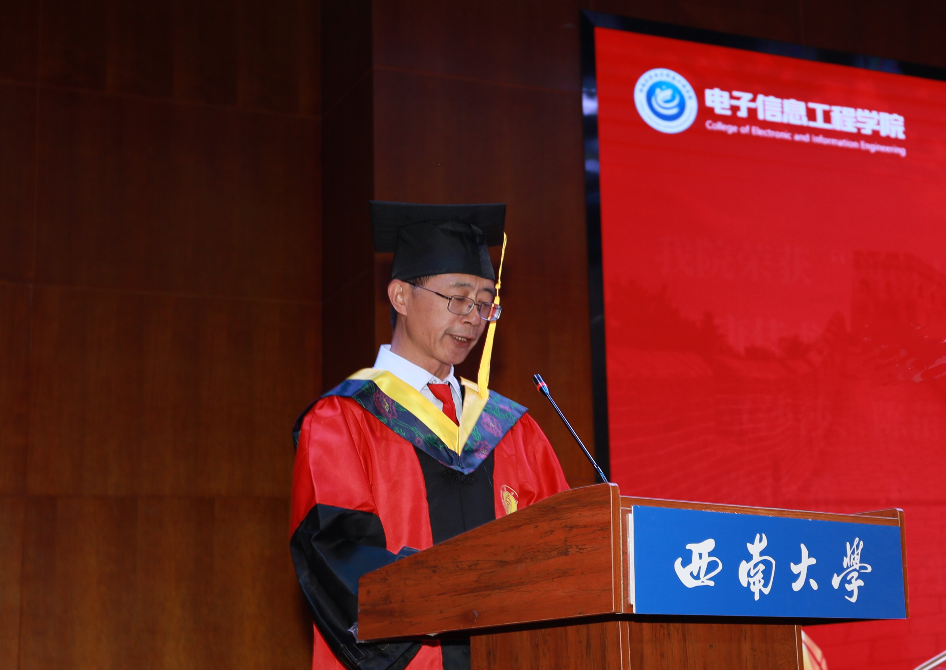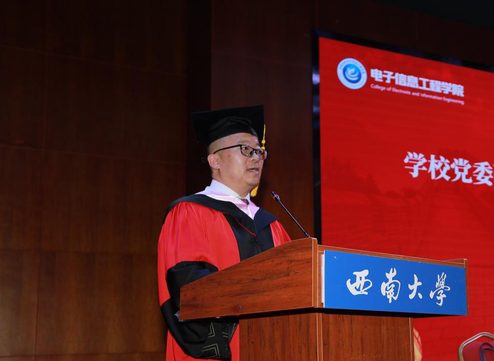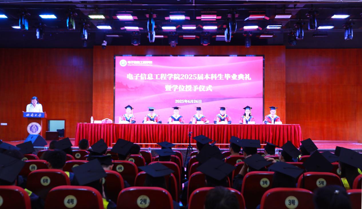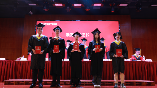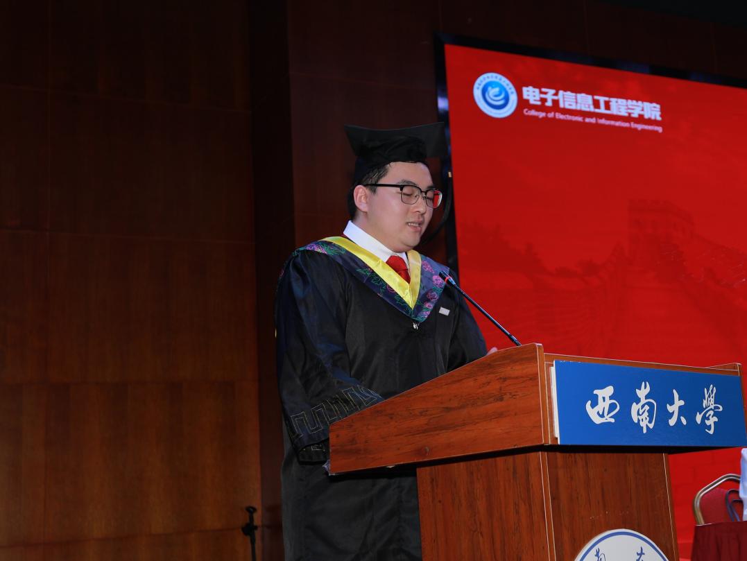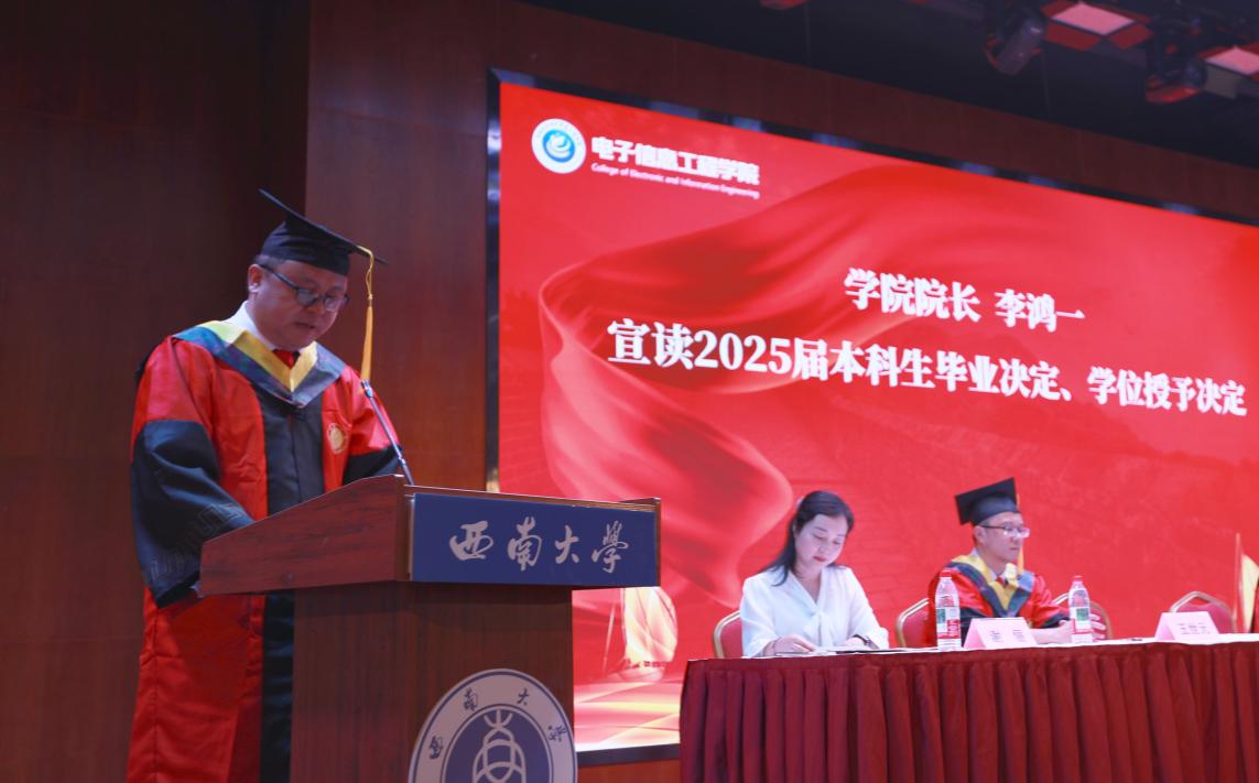 典礼上,2025届本科生吴佳乐代表毕业生发言。他分享了自己的成长故事,并对老师们的辛勤培育表达了真挚的感谢,表示作为电信学子,未来将扎根基层,把专业所学转化为服务群众的实际行动。