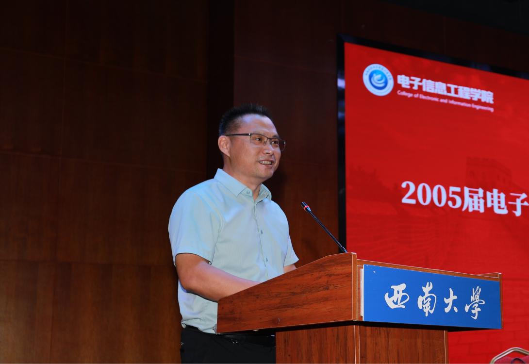 员工代表、2005 届毕业生、重庆嘉竞电子设备有限公司总经理吴家亮分享了自己的职业发展与创业历程。他结合自身经历,鼓励学弟学妹们把握行业发展机遇,勇于尝试创新。