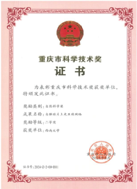 近日,2024年度重庆市自然科学奖正式公布。由学院解宜原教授团队牵头,联合重庆邮电大学申报的“自驱动片上光互连网络”荣获2024年度重庆市自然科学奖二等奖。