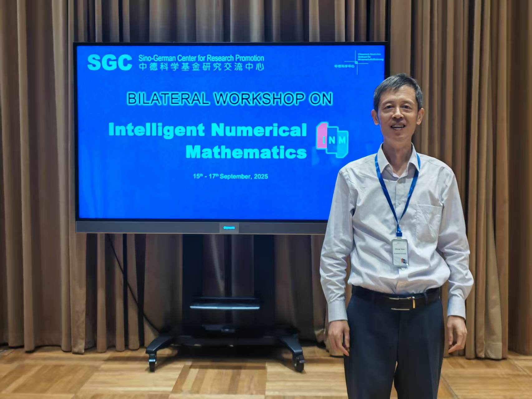 国家自然科学基金委员会中德科学基金研究交流中心(以下简称中德科学中心)于2025年9月15日至17日在北京组织召开“智能数值数学(Intelligent Numerical Mathematics)”中德双边学术研讨会。该会议旨在提升我国在智能数值计算领域的科研创新、技术研发和人才培养,促进中德两国在相关领域的科学合作。公司张远教授通过项目申请获得批准,参加了本次研讨会,并以《Research and Application of Efficient Learning Algorithms for Intelligent Healthcare》为题目做报告。