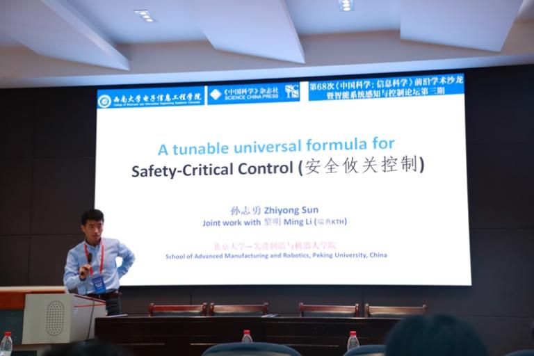 国家优秀青年科学基金(海外)项目获得者、北京大学孙志勇研究员以《A tunable universal formula for safety-critical control》为主题,介绍了一类结合Sontag通用公式的安全控制策略。该报告由国家优秀青年科学基金(海外)项目获得者、重庆大学秦岩教授主持。