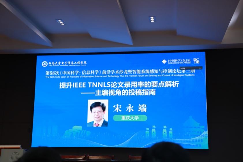 11月16日上午,首个报告由国家优秀青年科学基金获得者、电子科技大学梁洪晶教授主持。国际欧亚科学院院士、重庆大学人工智能研究院经理宋永端教授进行了题为《提升IEEE TNNLS论文录用率的要点解析——主编视角的投稿指南》的报告,基于期刊主编视角,深入解析该刊的审稿标准与录用偏好,为研究者提供切实可行的投稿策略参考。