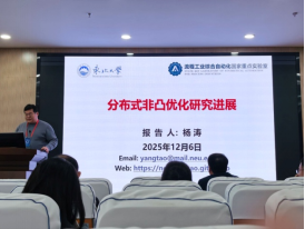 国家级高层次人才、东北大学杨涛教授以《分布式非凸优化研究进展》为题,针对非凸目标、连续通信假设及通信信道容量受限等实际问题,提出分布式一阶原始对偶非凸优化算法,以及基于事件触发和量化通信的分布式非凸优化算法。该报告由国家级青年人才、北京理工大学张言军教授主持。