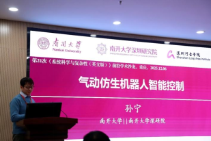 国家级青年人才、南开大学孙宁教授进行了题为《气动仿生机器人智能控制》的报告,介绍在单、多个气动仿生机器人精确建模和高性能智能控制方面的最新研究进展。该报告由电子科技大学彭知南副教授主持。