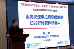 IEEE Fellow, 国家杰出青年科学基金获得者、中国科学院大学程龙教授进行了以《面向快速牵拉痉挛环节的仿龙虾尾软体机器人》为题的报告,介绍一种满足手部痉挛个性化需求的软体手部快速牵拉机器人,为痉挛的缓解提供一种新的技术手段。报告同时结合不同牵拉参数下感觉运动皮质活动变化,提出临床实验方案并评估牵拉方法的有效性。该报告由中国科学院自动化研究所王晨副研究员主持。