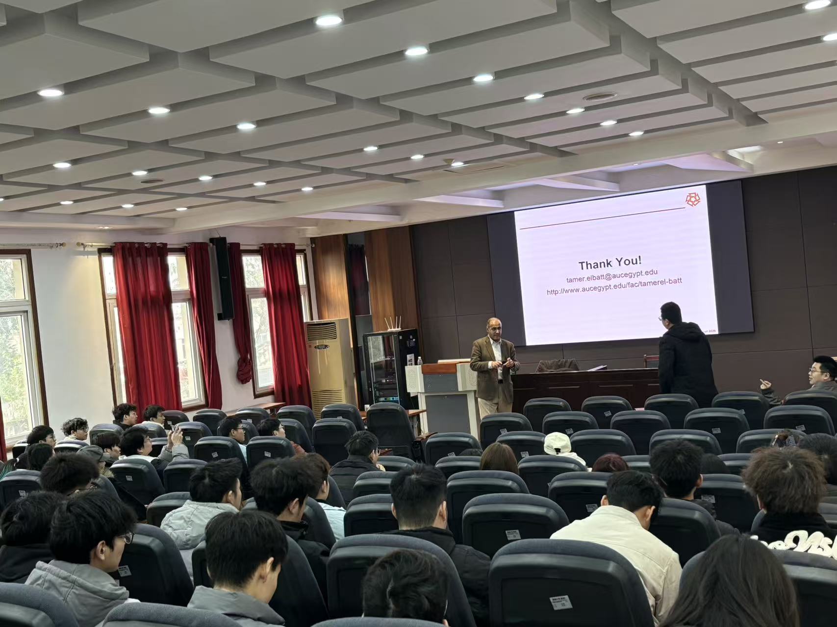 为传承公司深厚的学术底蕴,切实推进与各海内外高校相关领域人才的交流合作,学院于2026年1月22日特邀开罗美国大学(AUC)的计算机科学与工程系(CSE)Tamer El Batt教授就“An Outlook on the Future of Communications and Networking: 2030 and beyond”做主题报告。学院副经理王慧维主持本次讲座并致辞,代表学院对重庆大学电气工程学院叶佳教授及院内师生的莅临参会表示热烈欢迎。