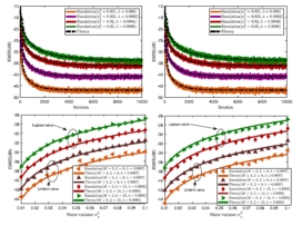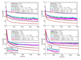 该研究针对传统非线性滤波方法存在的计算复杂度高、存储开销大及稀疏近似误差等瓶颈,创新性地提出了一种基于Kolmogorov-Arnold(KA)表示定理的权重可学习非线性滤波框架(Weight-learning-based nonlinear filter, WLNF)。该方法突破了传统系数加权的静态范式,首创性将滤波器权重视为“可学习函数”,利用高斯基函数线性组合实现了对非线性动态过程的高效建模(图2)。同时,团队推导设计了WL-LMS与WL-RLS两类自适应算法,实现了对基函数组合系数的在线动态学习和建模。在理论层面,该论文不仅给出了严密的均方收敛性条件,还完整推导了稳态与瞬态超量均方误差的闭式解,为算法的实际工程部署提供了坚实的数学支撑(图3)。广泛的实验验证表明,该方法在保持固定网络结构和极低计算复杂度的前提下,大幅提升了非线性滤波的稳态精度与收敛速度(图4),为复杂信号的在线实时处理与工程实用化推进提供了重要的新范式。
